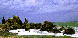 rocky hill on top of which sits an Old Portuguese fort. The fort is